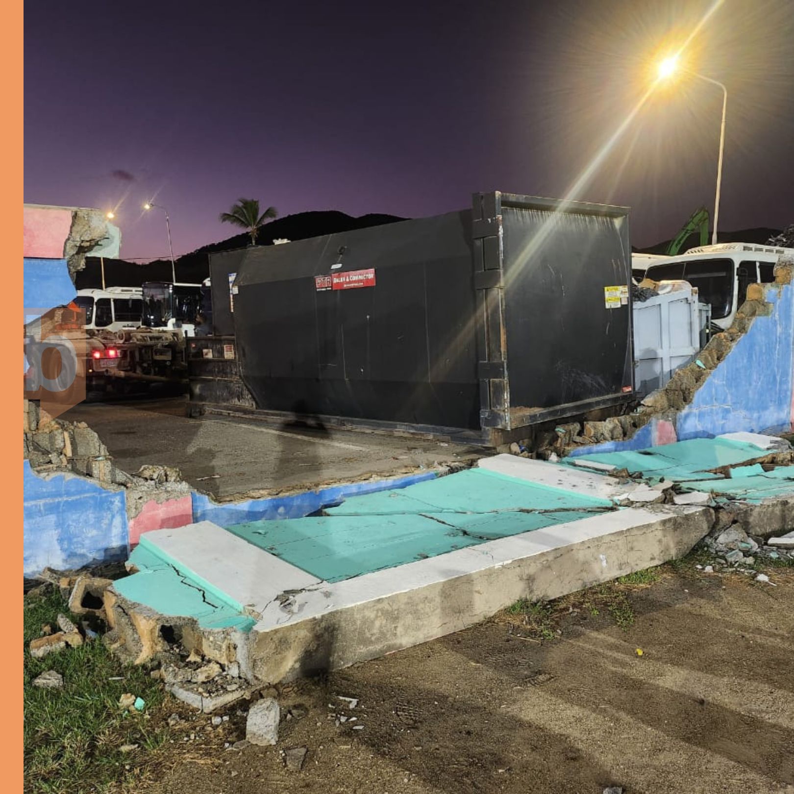 The matter drew public attention after the St. Maarten Little League Association reported that a garbage bin hauler struck the stadium’s outer concrete wall while attempting to position a large metal bin near the structure. The Association said the bin slammed into the wall, knocking down a significant section in view of children who were on the field for training at the time. The Association described the incident as serious and avoidable, warning that the wall is now compromised and may pose an ongoing hazard in an environment where children run and move unpredictably.