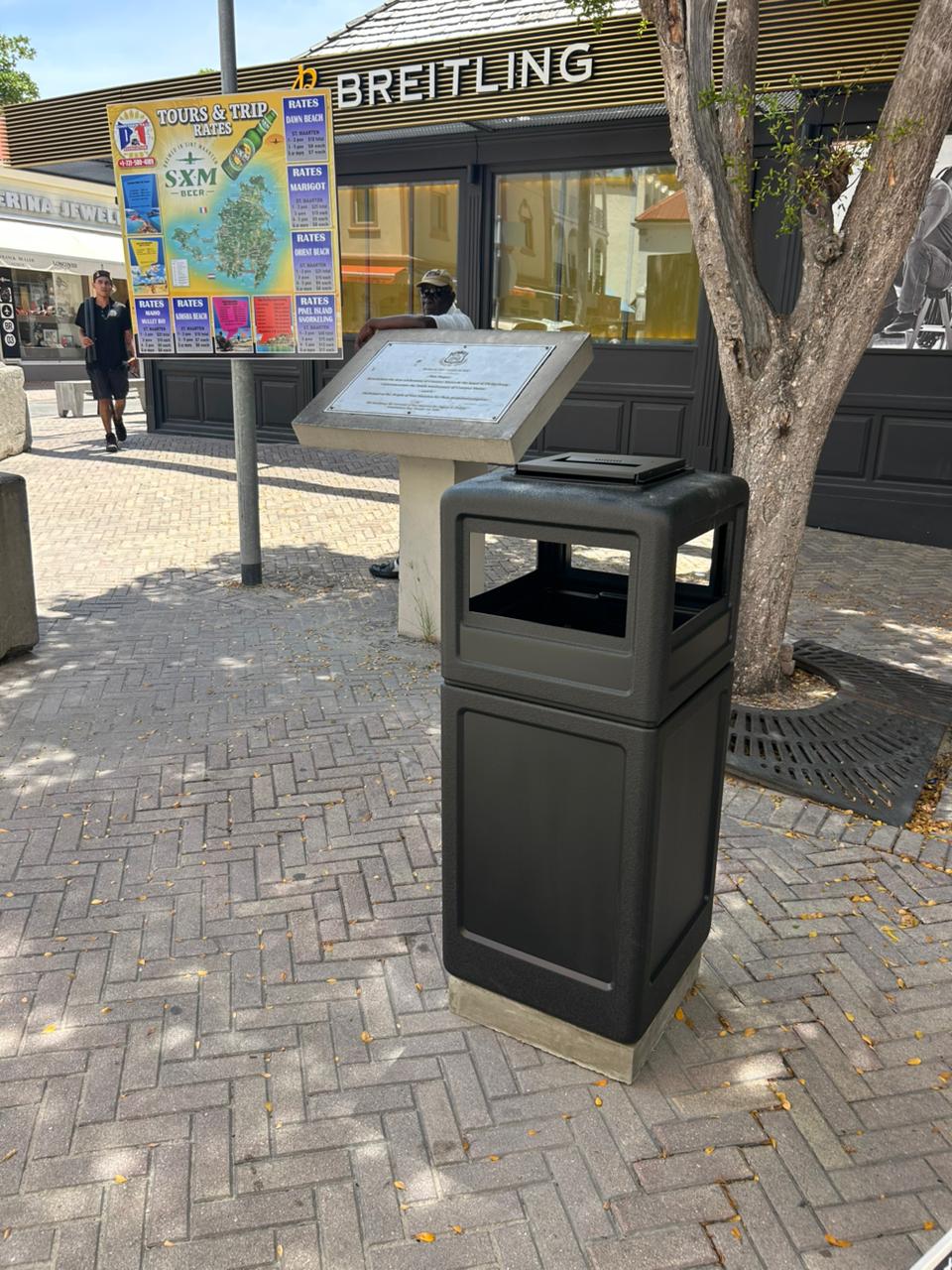 GREAT BAY--Quality Sweepers, led by Bertaux Fleming, has completed the installation of 23 new communal garbage bins along the full length of the Philipsburg Promenade, commonly known as the Boardwalk, as part of ongoing efforts to improve cleanliness, visitor experience and the overall appearance of the capital.